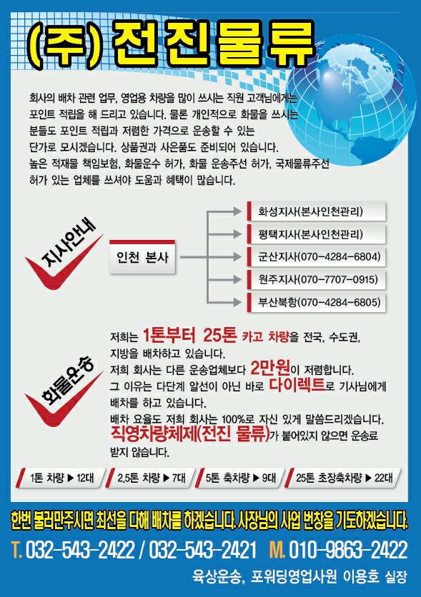 | 12 | (주)전진물류 | 2016.09.08 | 김동환 | ||